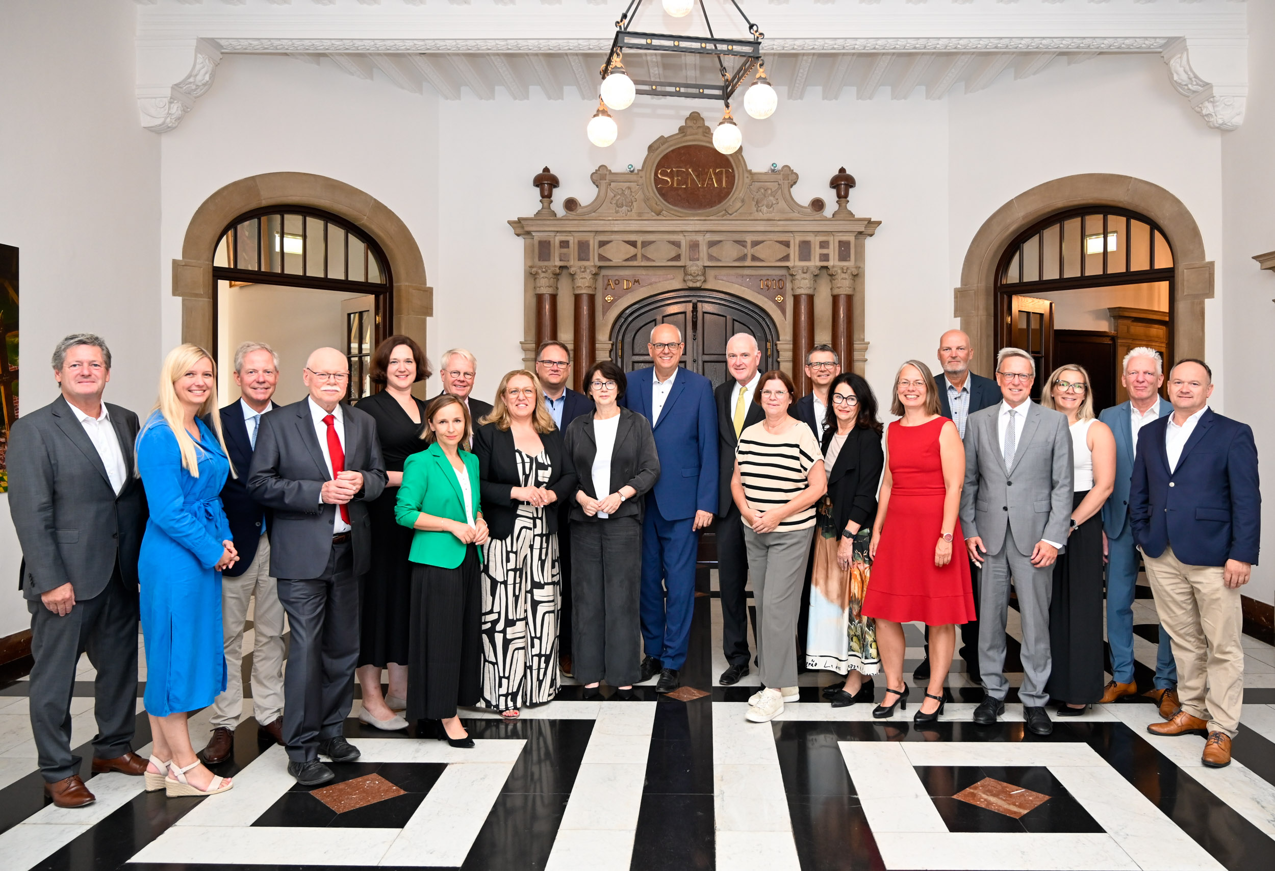19.08.2025Innenstadtentwicklung, Hafenfinanzierung, ESA-Ministerratskonferenz, Start-Up-Förderung und Bürokratieabbau – Senat und das Präsidium der Handelskammer Bremen – IHK für Bremen und Bremerhaven hatten für ihre heutige (19. August 2025) gemeinsame Sitzung ein Bündel gewichtiger Themen auf der Tagesordnung. Einigkeit bestand darin, dass sich einige Vorhaben in die richtige Richtung bewegen, aber weiter engagiert vorangetrieben werden müssen.