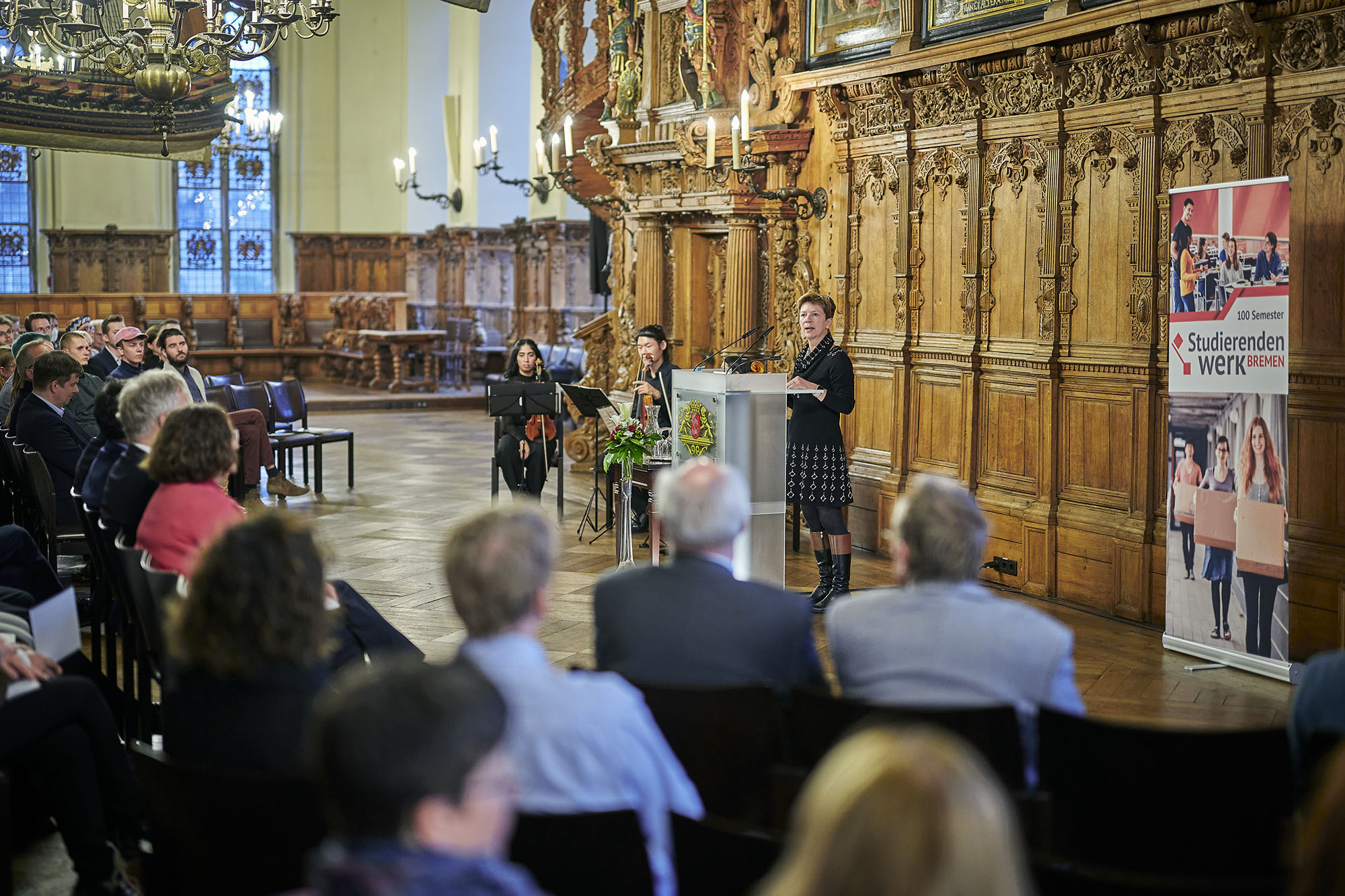Am gestrigen Montag (10. Oktober 2022) hat die Senatorin für Wissenschaft und Häfen, Dr. Claudia Schilling, zu einer Feierstunde mit anschließendem Empfang anlässlich des Jubiläums des 50-jährigen Bestehens des Studierendenwerks Bremen in die Obere Halle des Bremer Rathaus eingeladen. In ihrer Rede würdigte die Senatorin das Studierendenwerk als verlässlichen Partner der rund 31.000 Studierenden der staatlichen Hochschulen in Bremen und Bremerhaven.