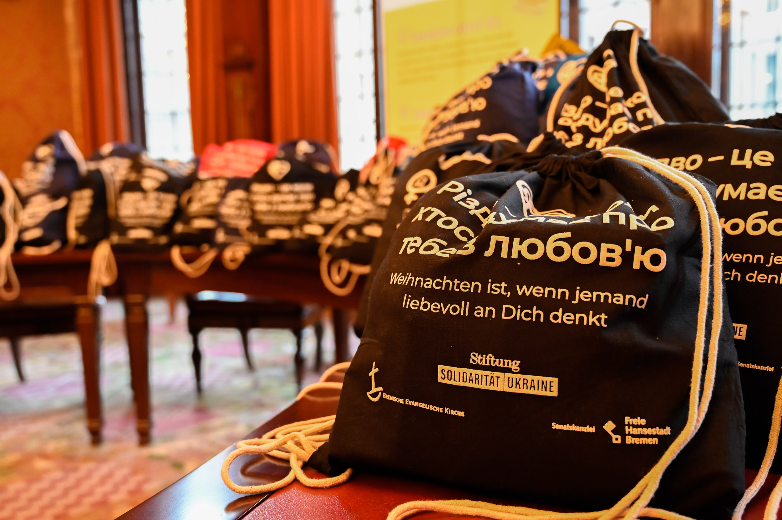 • Senatskanzlei übergibt Weihnachts-Beutel für die Aktion der Stiftung Solidarität Ukraine im Rathaus