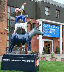 Eine fast drei Meter hohe Figur der Bremer Stadtmusikanten schmückt derzeit den Platz vor einem Museum in Danzig. Geschmückt sind Esel, Hund, Katze und Hahn mit den Stadtwappen der Städte Gdansk, Göteborg, Valetta und Bremen. Anlass für den viel beachteten Auftritt der Bremer in der polnischen Hafenstadt ist der „Europäische Tag des Meeres“, der in diesem Jahr in Gdansk stattfindet.