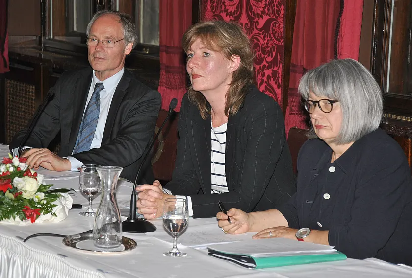 „Wer vom Fachkräftemangel von morgen spricht, soll über die Mängel der Ausbildung von heute nicht schweigen!“ hieß es in der Einladung zum gestrigen (25.06.2012) Rathausgespräch zum Thema „Fehlende Ausbildungsreife?“. Zu Gast im Bremer Rathaus war die stellvertretende Vorsitzende des DGB, Ingrid Sehrbrock (im Bild rechts). Die Rolle des Gastgebers übernahm in Vertretung von Bürgermeister Jens Böhrnsen Staatsrat Matthias Stauch (im Bild links). Moderiert wurde das Gespräch von Elke Heyduck, Arbeitnehmerkammer Bremen.