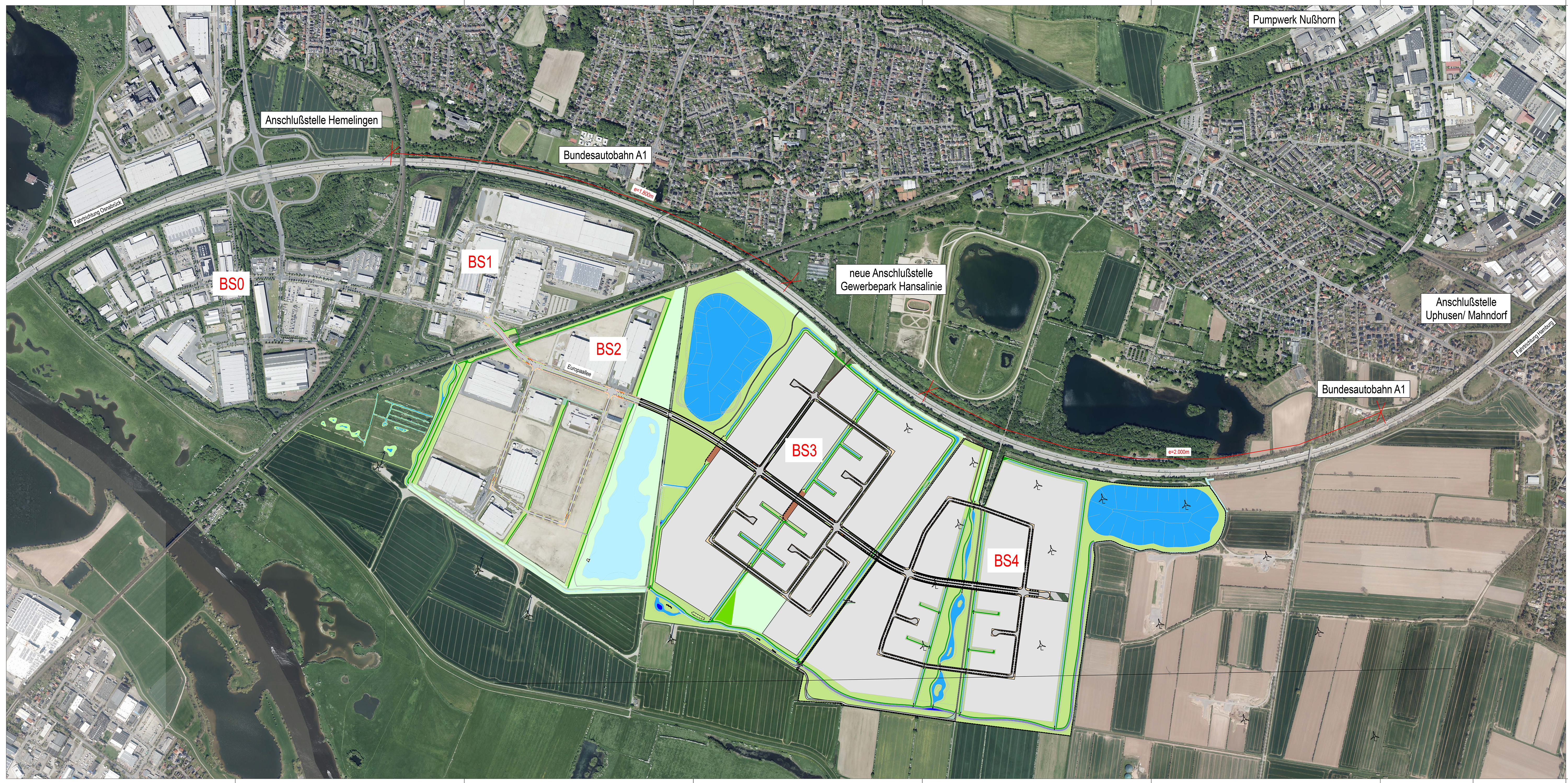 Im September 2025 starten die Arbeiten für die Erschließung der 3. Baustufe im Gewerbepark Hansalinie in Bremen. Weitere Flächen werden nachfrage- und bedarfsgerecht erschlossen.