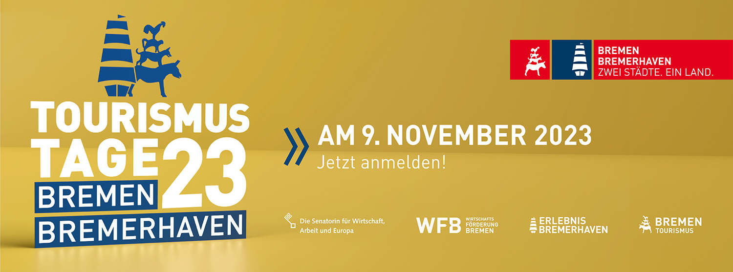 17.07.2023Herausragende Leistungen aus dem Tourismus im Bundesland Bremen zu würdigen, ist Ziel des Tourismuspreises, den die Senatorin für Wirtschaft, Häfen und Transformation, Kristina Vogt, gemeinsam mit der WFB Wirtschaftsförderung Bremen GmbH und der Erlebnis Bremerhaven GmbH im vergangenen Jahr erstmals vergeben haben. Ab sofort und bis zum 15. September können sich Unternehmerinnen und Unternehmer der Tourismusbranche nun auf den Tourismuspreis 2023 bewerben. Gesucht werden Formate, Projekte, Konzepte oder Angebote, die authentisch und besonders sind und den Tourismus im Land Bremen zukunftsorientiert aufstellen. Der mit jeweils 10.000,- Euro dotierte Preis wird in vier verschiedenen Kategorien pro Stadt vergeben. Weitere Informationen stehen unter www.tourismustage-landbremen.de.