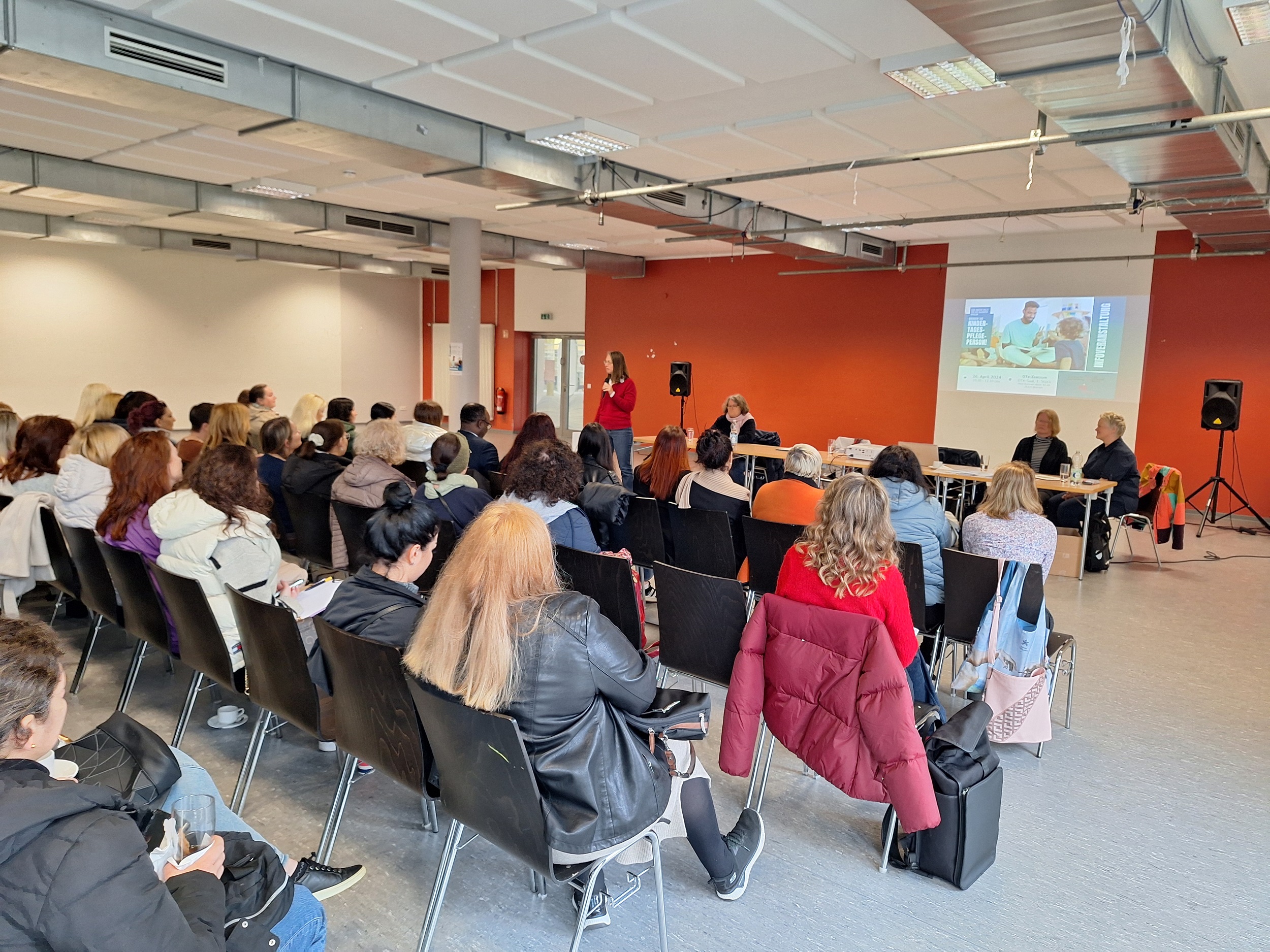 Bei einer weiteren sehr gut besuchten Veranstaltung im Rahmen der Kindertagespflegeoffensive warb die Senatorin für Kinder und Bildung, Sascha Karolin Aulepp, heute (26. April 2024) für die Qualifizierung zur Kindertagespflege und die Arbeit in der Kindertagesbetreuung. Über 90 Interessierte erschienen im OTe-Zentrum, um sich über die kostenfreie Qualifizierung zur Kindertagespflegeperson zu informieren.
