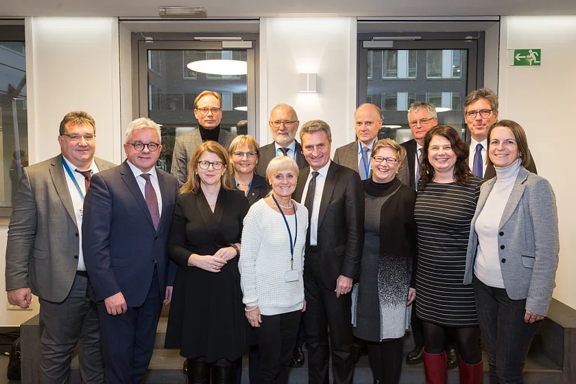 Im Vorfeld der 126. Plenartagung des Europäischen Ausschusses der Regionen (AdR) am 30. November in Brüssel diskutierten die Mitglieder der Deutschen Delegation mit Günther Oettinger, EU-Kommissar für Haushalt und Personal, über die Zukunft des EU-Haushalts und die Strukturpolitik nach 2020.