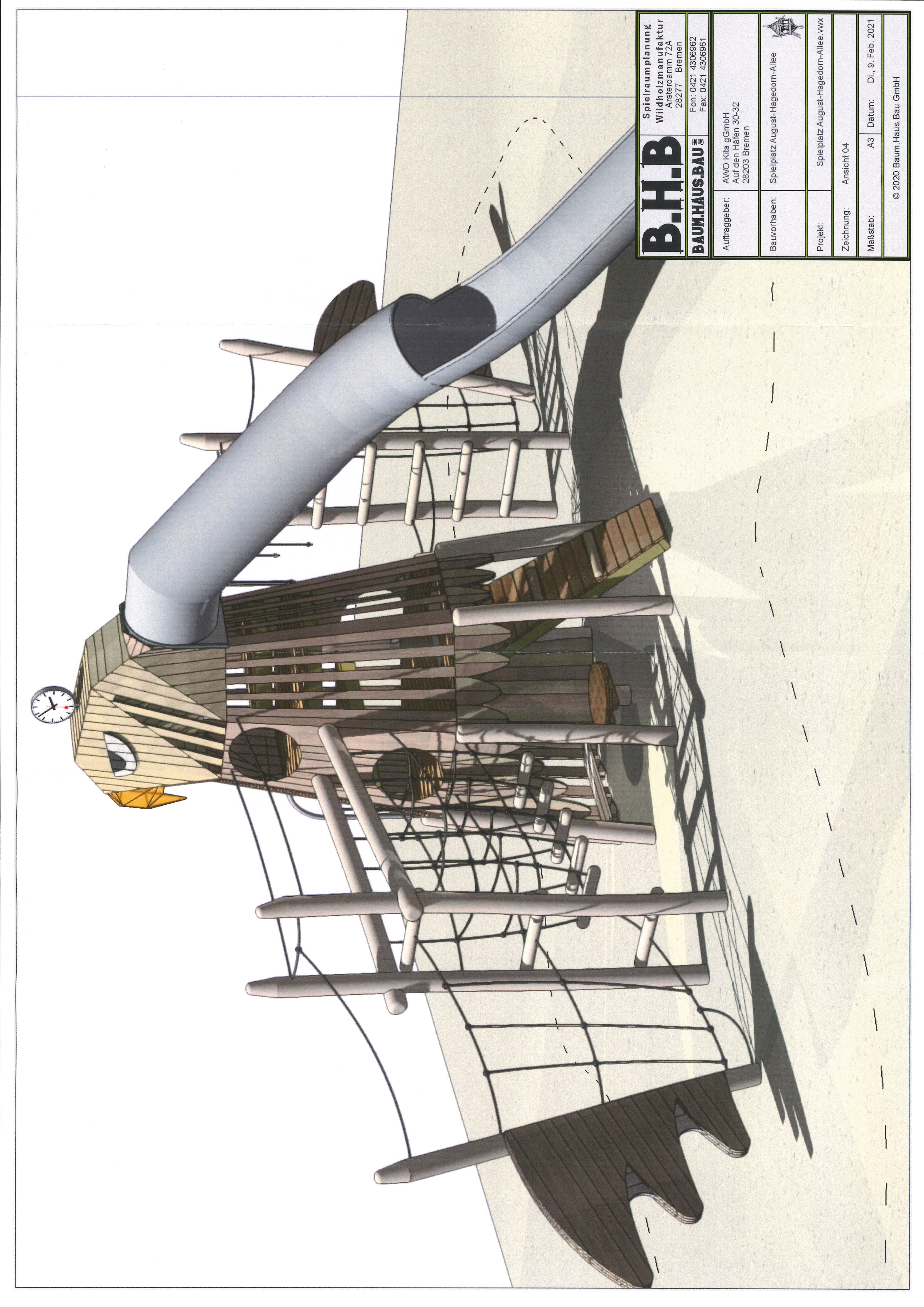 Die Umgestaltung des "Spielplatzes mit der Uhr" in der August Hagedorn-Allee in Arsten schreitet nach einem umfangreichen Beteiligungsverfahren mit Kindern, Eltern und Anwohnenden voran. Bereits abgeschlossen ist der Austausch der nicht mehr nutzbaren Kleinkindschaukel durch eine Nestschaukel. Ein neues, außerordentlich eindrucksvolles Großspielgerät in der Anmutung eines Adlers mit weit gespreizten Schwingen wird voraussichtlich im Frühsommer aufgestellt. Auch die Uhr als charakteristisches Merkmal des Platzes soll erhalten bleiben.