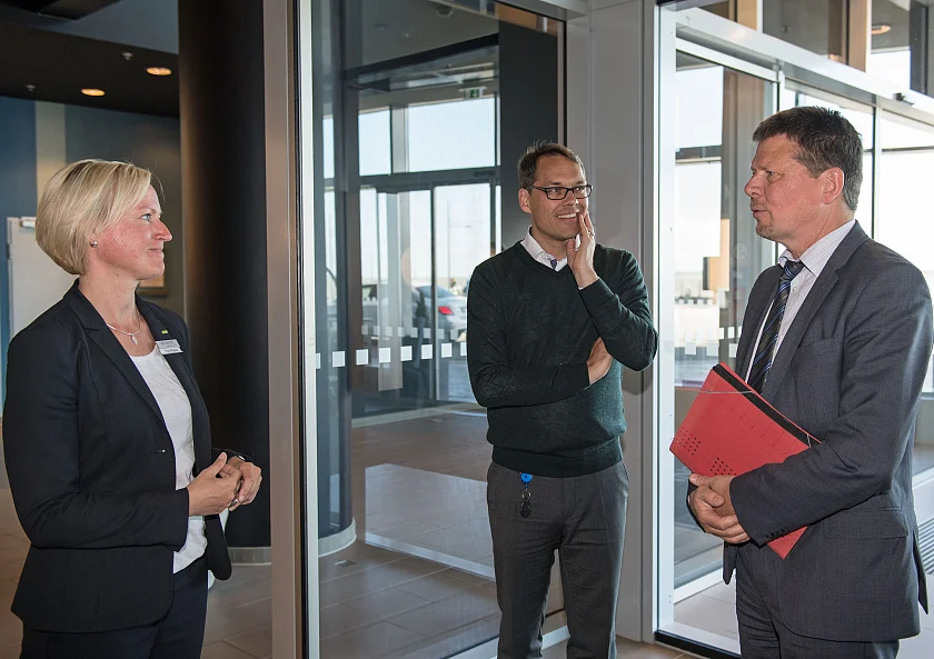 PUU-Gründungsmitglied Rübeling Dental-Labor war die letzte Station auf Lohses erster Etappe im Auftrag von Umwelt- und Klimaschutz. 43.000 Stück Konfektionszähne, 68 Kilogramm Kunststoff und 25 Kilogramm Keramikmassen, dazu noch 13.200 Kilogramm Gips und 235 Kilogramm Wachse – das sind nur einige der Rohstoffe, die im größten Dentallabor Norddeutschlands pro Jahr benötigt werden, um maßgeschneiderte Zahnimplantate zu fertigen. Auch hier zeugen umfangreiche Maßnahmen für Energieeffizienz und Ressourcenschonung von einer nachhaltigen Unternehmensstrategie. So zeigte Geschäftsführer Frank Rübeling dem Umweltsenator das ganze Spektrum von der Photovoltaikanlage über die mit einer hochmodernen Klimaanlage ausgestatteten Büroräume bis hin zur Lieferflotte mit Erdgasantrieb. „Die Unternehmen, mit denen ich heute in Bremerhaven ins Gespräch gekommen bin, setzen allesamt Maßstäbe in Sachen betrieblicher Umwelt- und Klimaschutz. Das hier ist Green Economy von seiner besten Seite“, resümierte Senator Lohse zum Ende des Tages in der Seestadt.