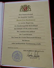 Uwe Beckmeyer ist neuer Honorarkonsul der Republik Namibia