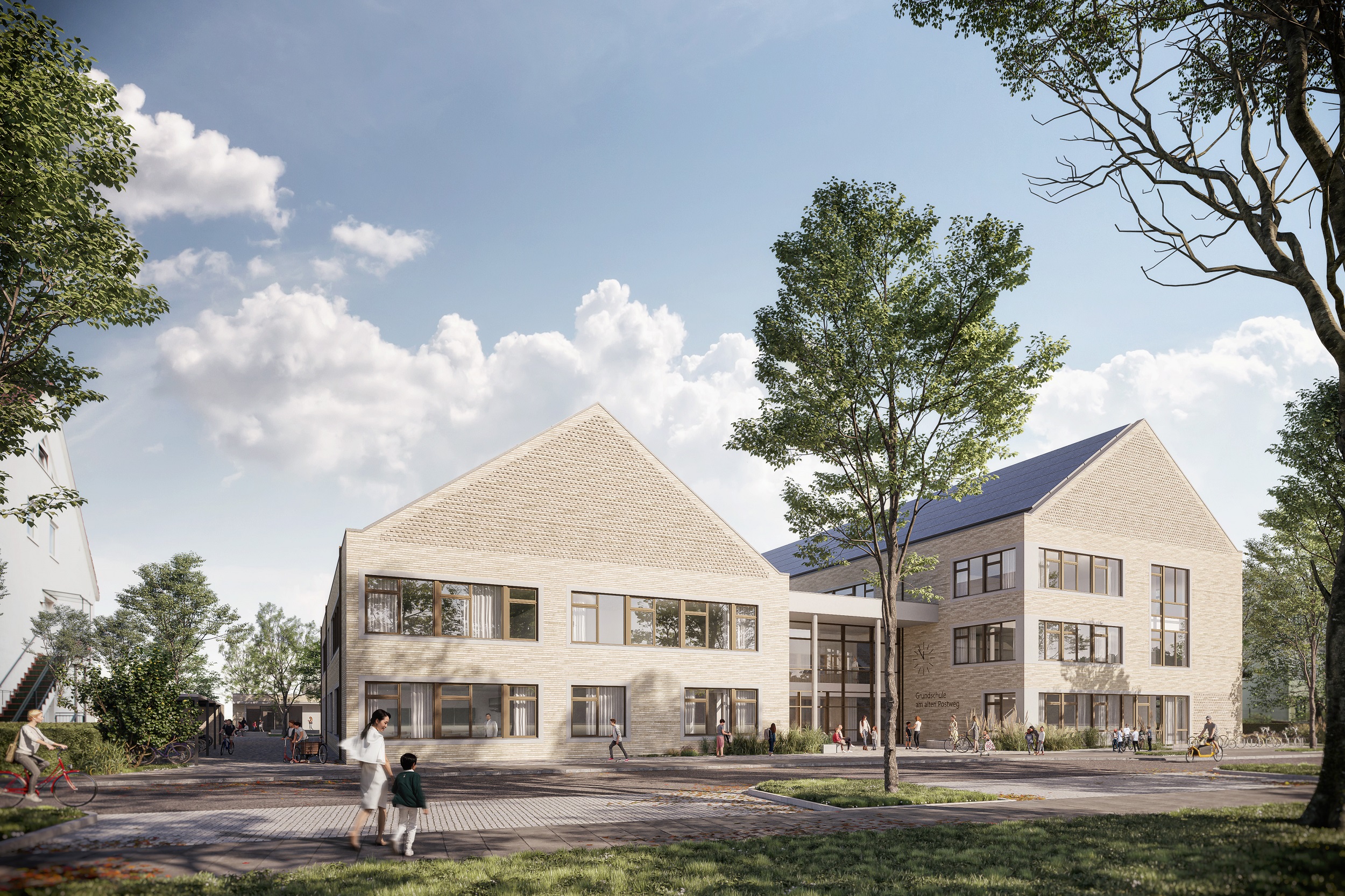 So wird die Ganztagsschale am Alten Postweg aussehen. Visualisierung: Dohle+Lohse_Architekten und Goldbeck