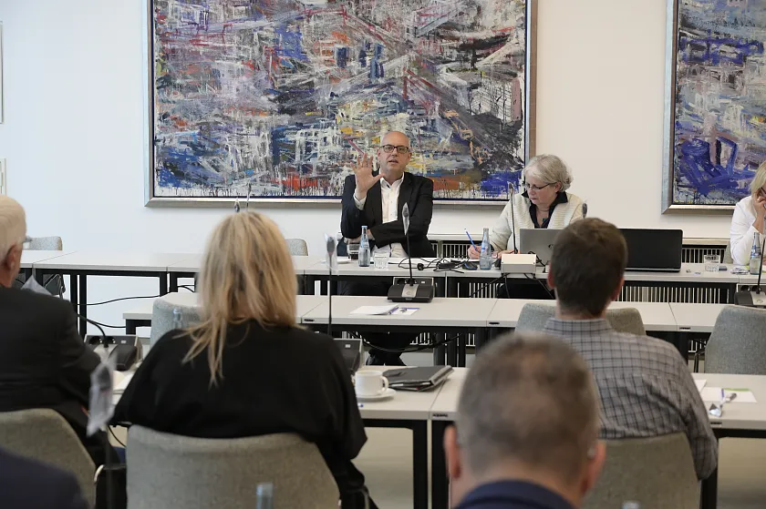 Bürgermeister Andreas Bovenschulte eröffnet das Treffen des Kommunalverbundes mit einer Begrüßungsrede. Quelle: Senatspressestelle