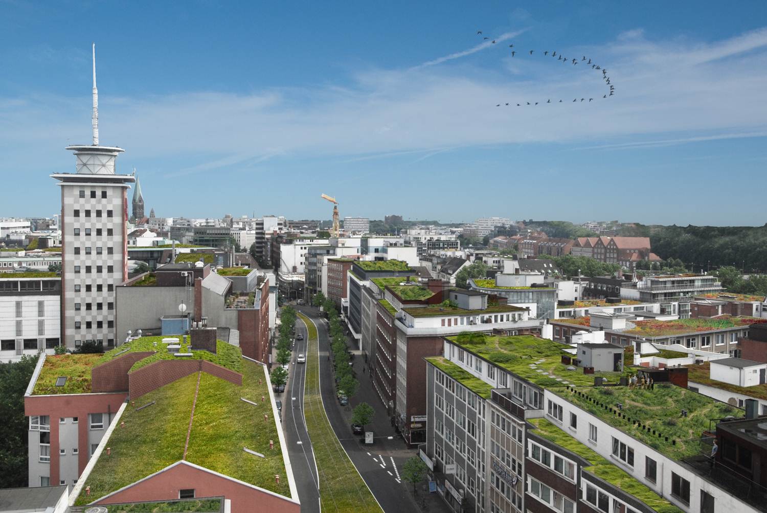 Foto-Download (jpg, 213.9 KB) Starkregen - Grüne Dachlandschaften in Bremen. Status Quo und Visualisierung möglicher Dachbegrünung als Beispiel
