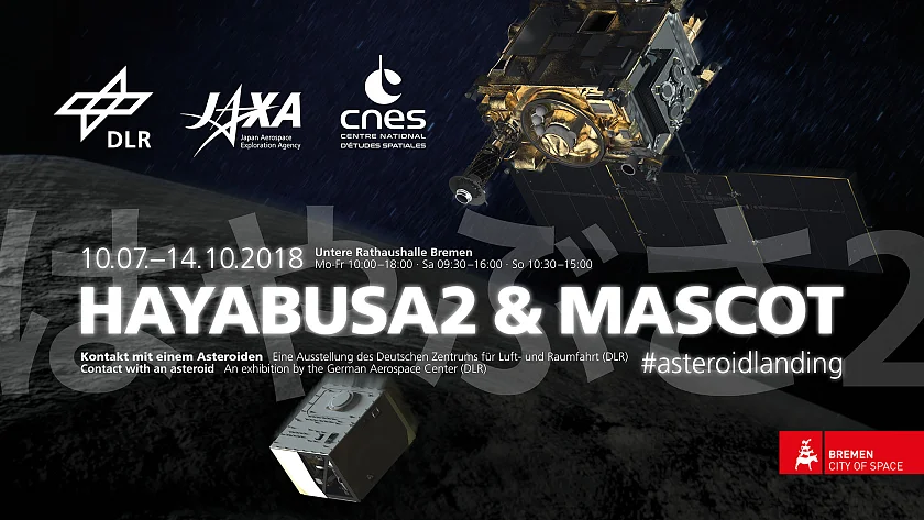 Unter dem Titel „Kontakt mit einem Asteroiden – HAYABUSA2 und MASCOT“ gewährt das DLR detaillierte Einblicke in die Mission: Vom 10. Juli bis zum 14. Oktober 2018 wird die Untere Rathaushalle eine Ausstellung zu den beiden Raumfahrzeugen beheimaten. Die Besucherinnen und Besucher können dort über 1:1-Modelle von HAYABUSA2 und MASCOT staunen und bekommen den Ablauf der Mission und die Bedeutung des Asteroiden für die Erforschung des Sonnensystems erklärt.