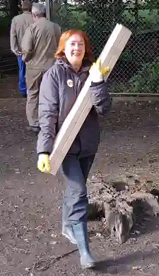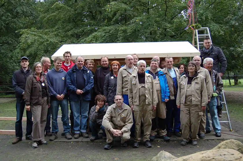 21.09.2010Ein ungewohntes Bild bot sich SpaziergängerInnen am Wochenende im Dammwildgehege des Bürgerparks – auf dem Terrain der Rehe und Hirsche errichteten emsige HandwerkerInnen eine neue Futterraufe und besserten einen Zaun aus. Wer genauer hinsah entdeckte Bürgermeisterin Karoline Linnert unter den Aktiven. Gemeinsam mit Beschäftigten aus dem Finanzressort war sie zum „Day of Caring“ ihrer Behörde in den Bürgerpark gekommen. Fachkräftig unterstützt wurden sie dabei von Mitarbeiterinnen und Mitarbeitern der Werkstatt Bremen, die die massive Futterraufe aus Lärchenholz angefertigt hatten.