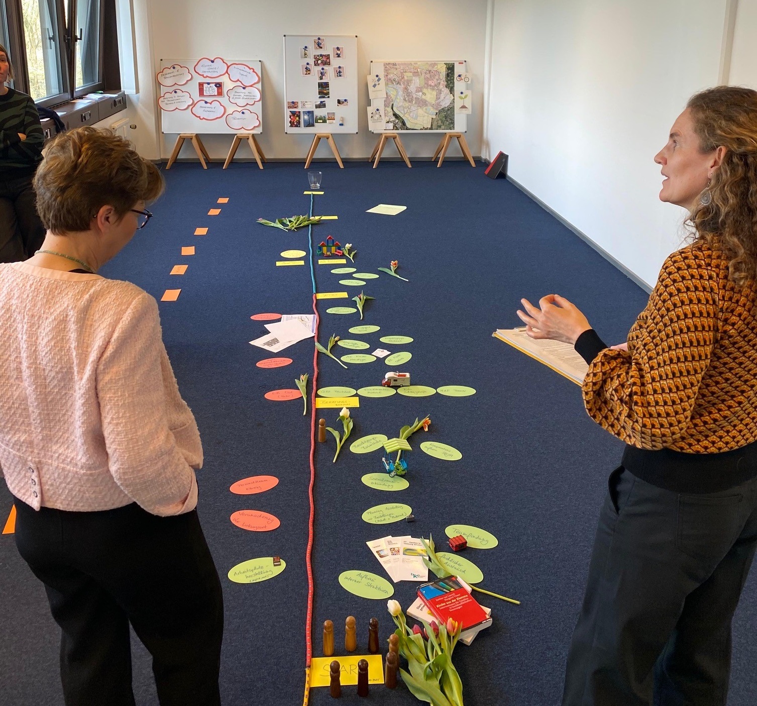 Leiterin Swantje Büssenschütt (r.) erklärt Senatorin Dr. Claudia Schilling das Konzept der präventiven Erziehungsberatung.