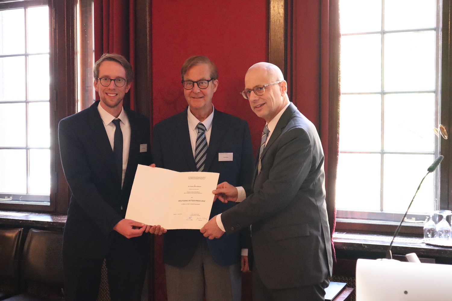 Bremens Wissenschaftsstaatsrat Tim Cordßen-Ryglewski würdigt die Preisträgerinnen und Preisträger, die zumeist nicht aus Bremen kommen, in seinem Grußwort als wertvolle MultiplikatorInnen für den Wissenschaftsstandort Bremen. "Als Botschafterinnen und Botschafter für diesen Standort spielen die Trägerinnen und Träger des Wolfgang-Ritter-Preises eine ganz besondere Rolle und erhöhen die Attraktivität des Wissenschaftsstandortes Bremens", sagt er.