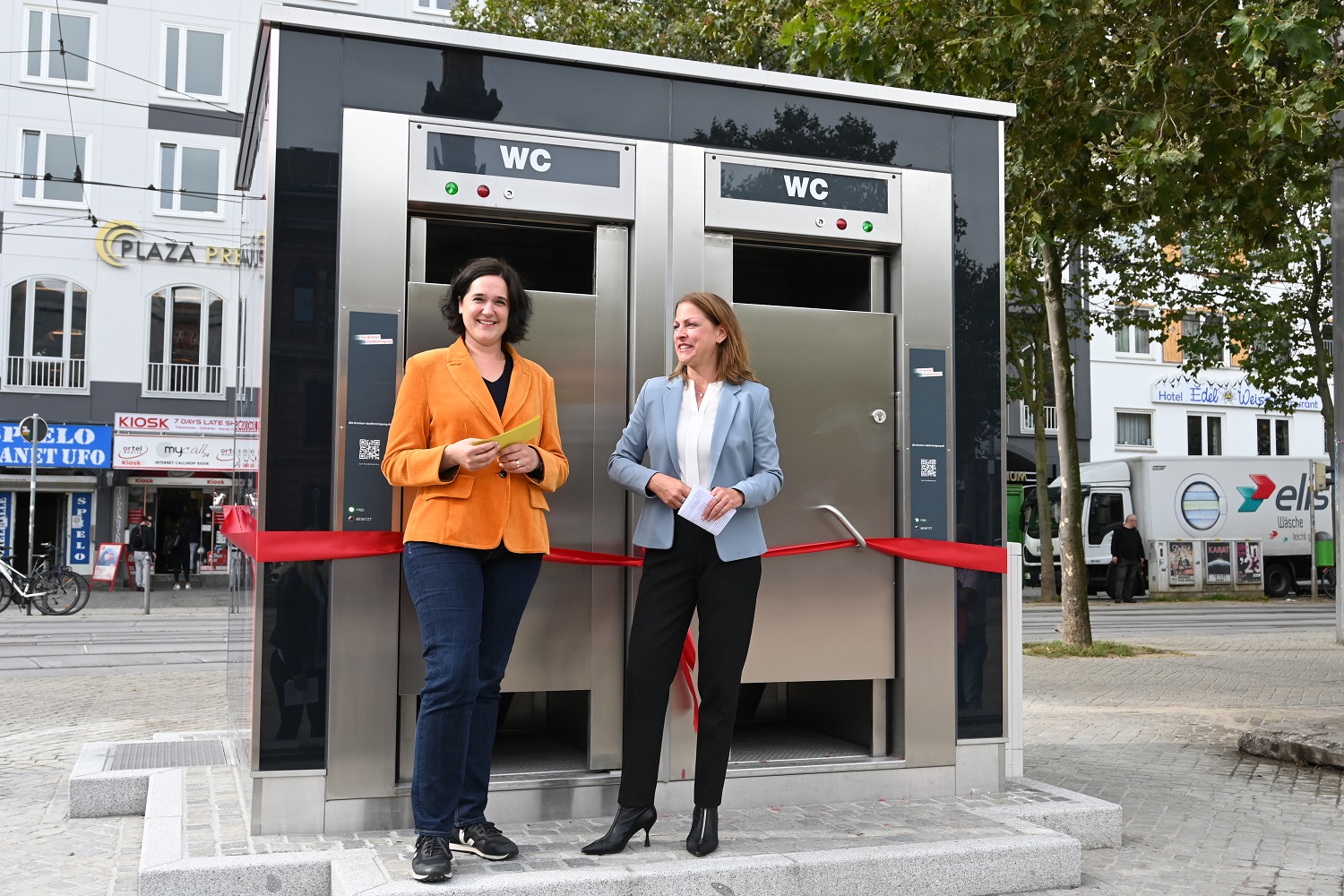 Senatorin Kathrin Moosdorf eröffnet mit der Bremer Stadtreinigung kostenlose Toiletten